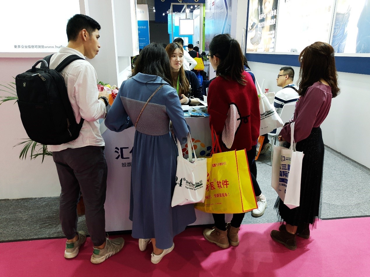 (展会现场,来汇付天下展厅咨询的客户络绎不绝)