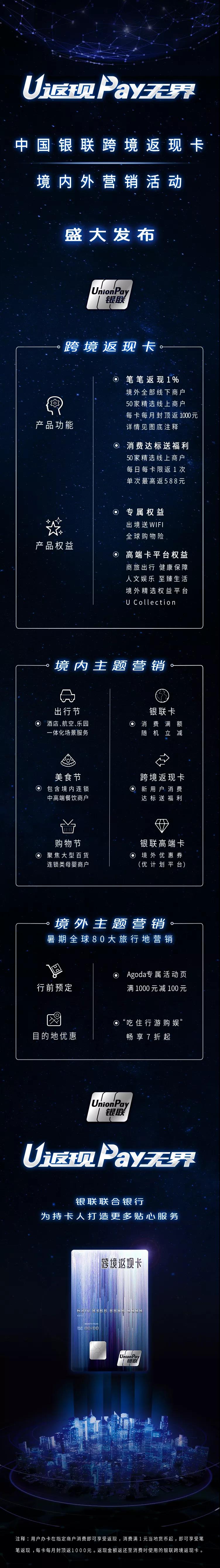 “银联跨境返现卡”是一款具备移动支付、跨境返现及云闪付抽红包功能的信用卡产品。