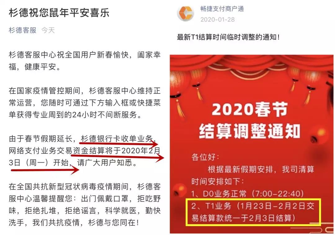 值得注意的是今日已有多家支付机构发布了《2020年春节结算调整通知》,均表示春节假期的清算时间延长至2月3日。后续应该有支付机构的通知陆续发出来。