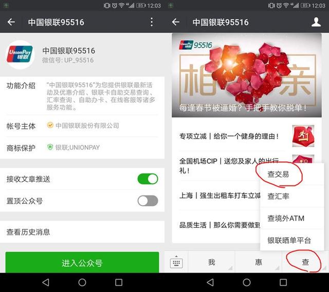 官方账户是中国银联95516。点击菜单栏中的“支票交易”,根据提示输入卡号和手机号,即可查询到银联的真实信息。需要注意的是,银行只能查询到大多数银行的银行间交易,有些交易只能在两三天内在银联的后台查询到,因此如果找不到交易,可以推迟两三天。