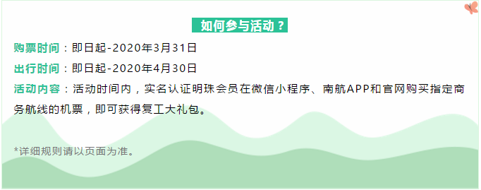 与此同时,南方航空专为助力疫情期间的复工复产,推出了三大最新优惠活动!