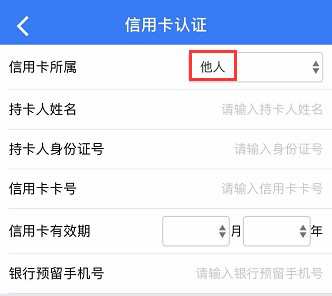l 如选择验证“他人”卡,则需手动输入持卡人信息