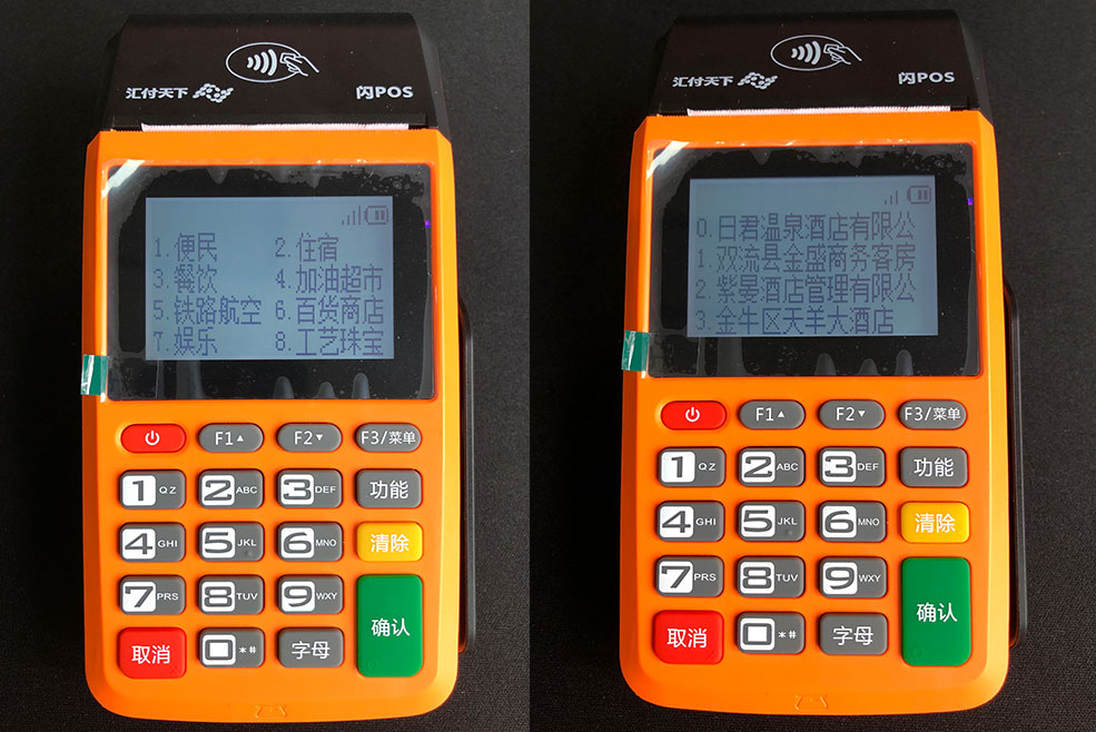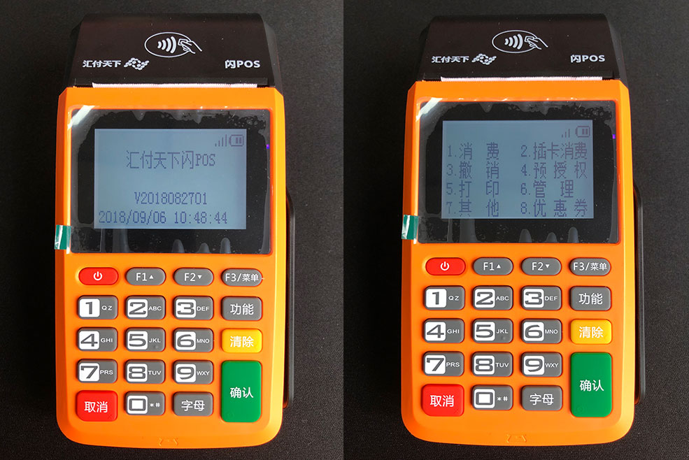 l 在闪POS终端上依次点击【确认】、【1.消费】,输入交易金额,即可交易