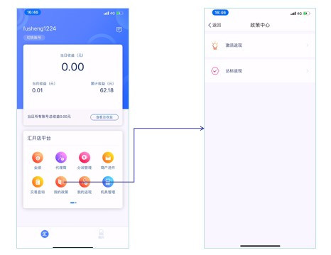 步骤:依次点击首页—我的政策,可配置所有下级渠道商/代理商的激活返现金额、达标返