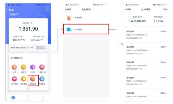 步骤:依次点击首页--我的返现--达标返现,可查看我的达标返现数据